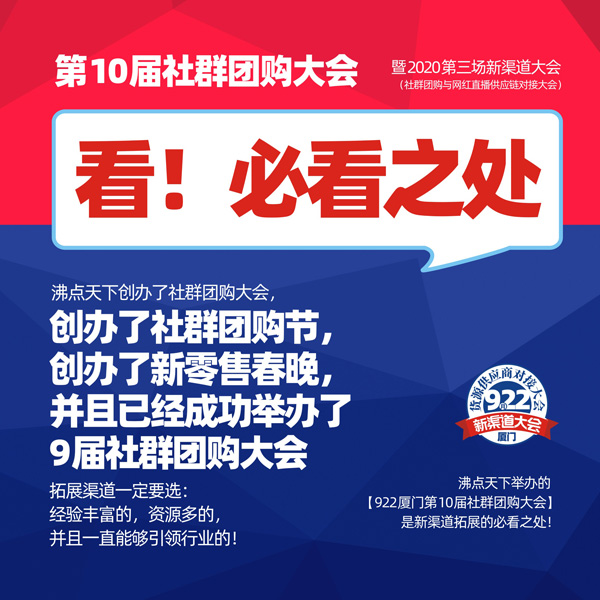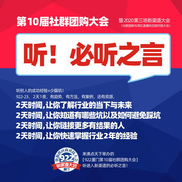 既然渠道拓展是必經之路,那就來【922廈門第10屆社群團購大會】