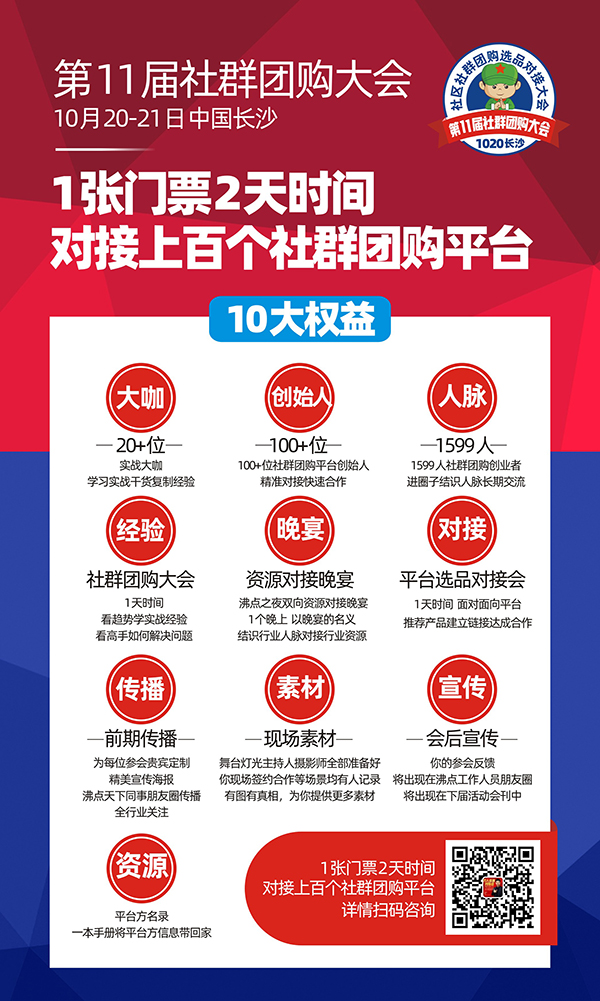 歡迎更多朋友,前來參加,10月20日長沙第11屆社群團購大會暨平臺選品對接會。