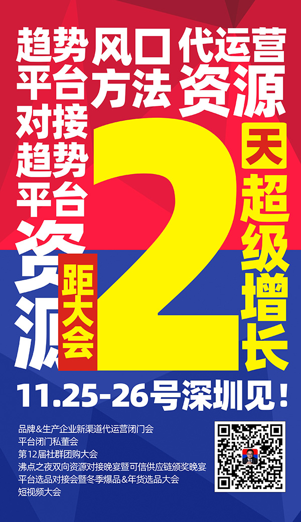 如果你想對(duì)接平臺(tái),11月26號(hào)的平臺(tái)選品對(duì)接會(huì),你一定要聽(tīng);如果你想要找到專(zhuān)業(yè)機(jī)構(gòu)助力你拓展新渠道,11月24號(hào)下午的品牌&生產(chǎn)企業(yè)新渠道代運(yùn)營(yíng)閉門(mén)會(huì),你一定要參加。