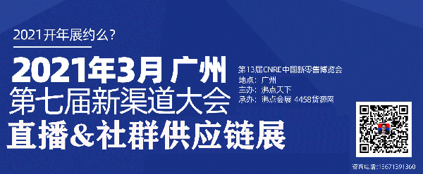 由沸點(diǎn)天下、沸點(diǎn)會(huì)展、4458貨源網(wǎng)聯(lián)合舉辦的“2021第七屆新渠道大會(huì)(社群與直播供應(yīng)鏈展)、第13屆CNRE新零售博覽會(huì)”將定于2021年3月5日-6日移師在廣交會(huì)展館聯(lián)袂召開。