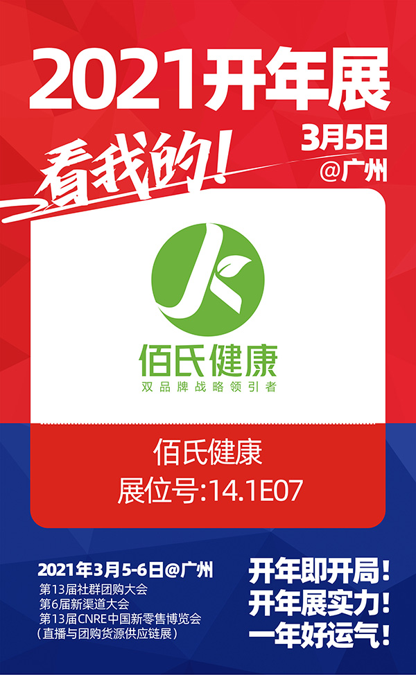2021年開年展將于2021年3月5-6號在廣州廣交會館舉辦。作為2021行業盛宴,吸引了數百家品牌企業前來參展,來自全國各地的團購和直播渠道創業人士匯聚一堂、共同探討趨勢,學習方法,交流合作。屆時,廣東佰氏健康集團作為大健康產業鏈標桿企業,窺探先機,果斷入駐2021開年展!
