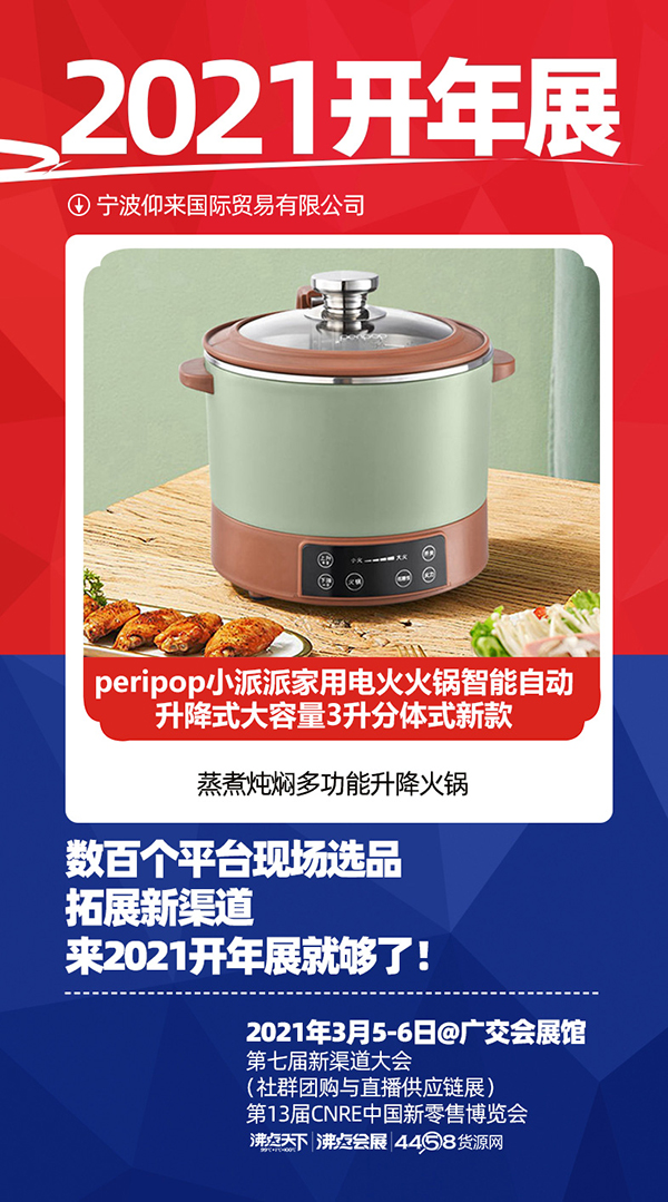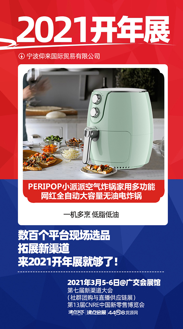 2021年3月5日-6日,由沸點天下發起的2021供應鏈開年展“2021第七屆新渠道大會(社群與直播供應鏈展)、第13屆CNRE新零售博覽會”定于在廣交會展館召開。此次展會由沸點天下、沸點會展、4458貨源網聯合舉辦。作為2021年開年第一展,以“新渠道加速新增長”為主題,寧波仰來國際貿易有限公司受邀出席。
