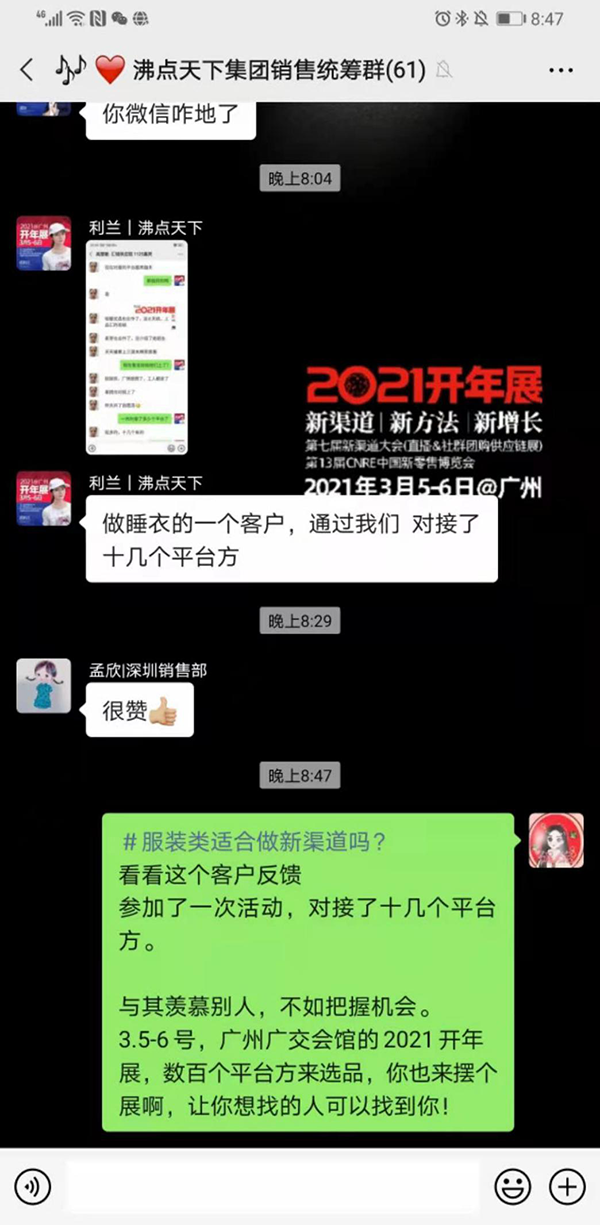 由沸點(diǎn)天下舉辦的2021春季社群團(tuán)購供應(yīng)鏈展正在火熱招募中,很多服裝類企業(yè)咨詢:傳統(tǒng)渠道厲害,我們也想拓展社群團(tuán)購賽道,可是不知道服裝類是否適合?