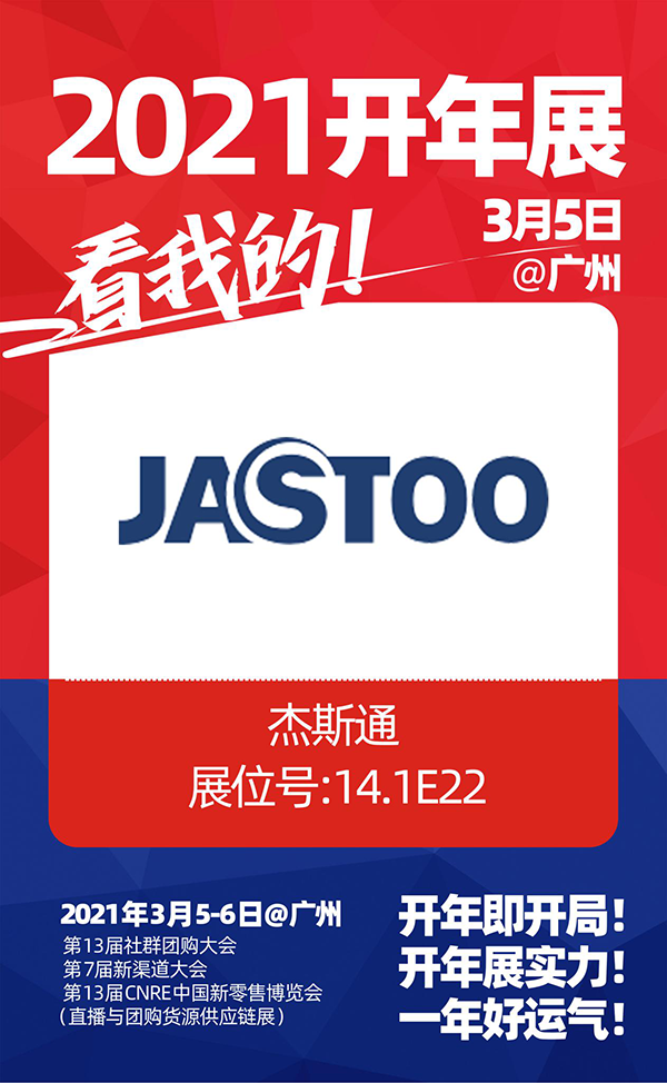 JASTOO旨在通過沸點(diǎn)這個(gè)平臺(tái),可以更快捷地尋找更合適的合作方。3月5-6號(hào),2021社群團(tuán)購(gòu)供應(yīng)鏈開年展,JASTOO與你相約廣州廣交會(huì)館,不見不散!