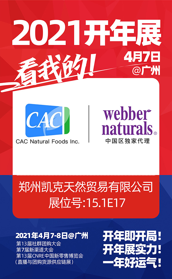 2021年4月7日-8日,由沸點天下、沸點會展、4458貨源網聯合舉辦的“2021第七屆新渠道大會(社群與直播供應鏈展)、第13屆CNRE新零售博覽會”以“新渠道加速新增長”為主題,定于2021年4月7日-8日在廣交會展館召開,加拿大凱克天然食品有限公司受邀參展!