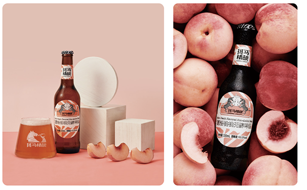 不含酒精的飲料卻做到了如啤酒般上頭的風味,口感上就像誤入 桃源,桃子的芳香頃刻間撲 面而來,一口喝下去,唇齒間充盈了香 甜,無需微醺也能感受啤酒的美妙。