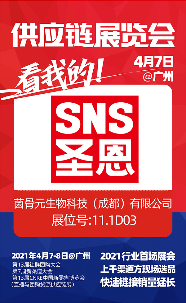 由沸點天下、沸點會展、4458貨源網聯合舉辦的“2021第七屆新渠道大會(社群與直播供應鏈展)、第13屆CNRE新零售博覽會”將于2021年4月7-8日在廣州廣交會館B館舉辦。本次展會匯聚全國優秀的社群團購和直播供應鏈企業齊集廣州,菌骨元生物科技(成都)有限公司即將隆重亮相2021供應鏈展覽會。