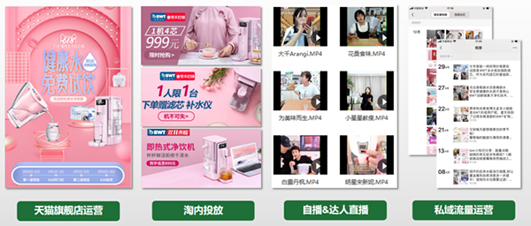 2018年與德國BWT,合作150+頭部自媒體KOL深度種草,覆蓋微信公眾號、抖音、淘寶、微信社群、線下KA、線下母嬰等500+合作渠道,KOL單場團購銷售額最高260W+,累計各類渠道銷售額3000W+。