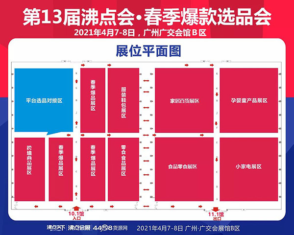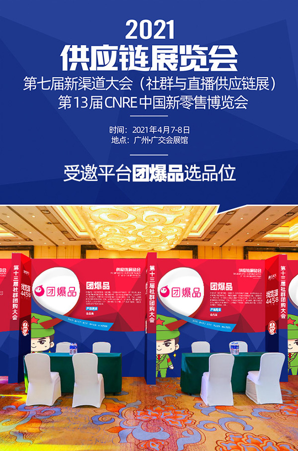 2021供應鏈展覽會于4月7-8日,在廣州廣交會館B區舉辦,此次大會由沸點天下、沸點會展、4458貨源網聯合舉辦。本次展會以【新渠道,新機遇,新增長】為主題,旨在讓更供貨商快速對接新渠道,獲得更增長。主要分為春季爆品展區、零食食品區、服裝鞋包區、家居百貨區、孕嬰童產品區、小家電展區、跨境商品展區六大展區,設置1000個展位,預計有5000款產品現場展示對接。