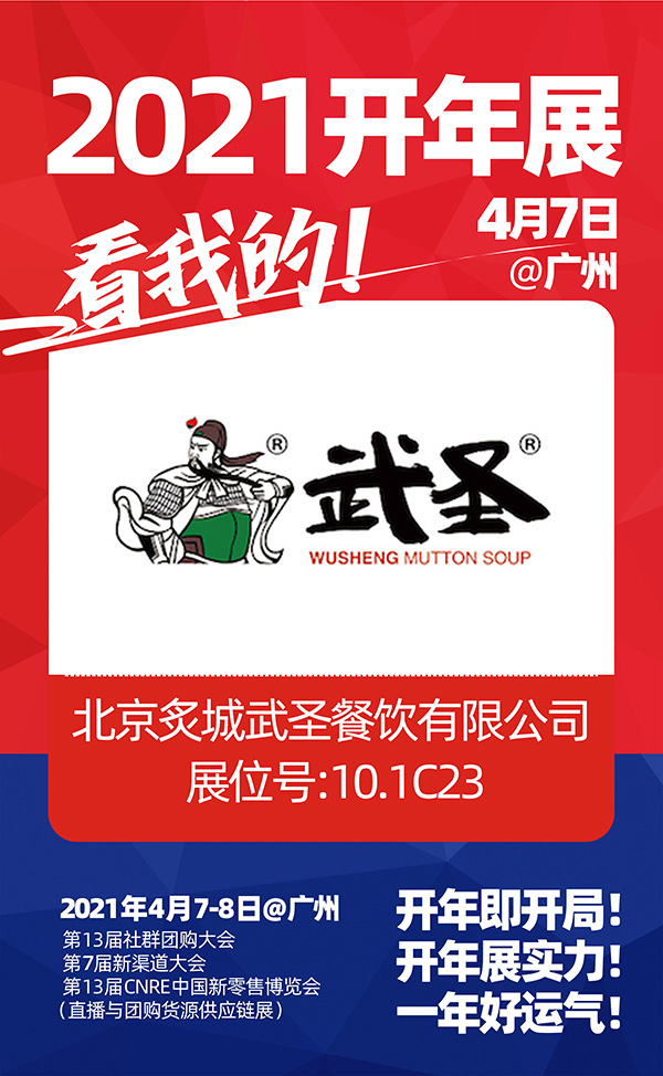 由沸點天下、沸點會展、4458貨源網聯合舉辦的“2021第七屆新渠道大會(社群與直播供應鏈展)、第13屆CNRE新零售博覽會”將于2021年4月7日在廣州舉辦,北京炙城武圣餐飲有限公司(以下簡稱:武圣)受邀參展本次展會。