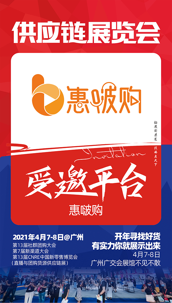 2021供應鏈展覽會于4月7-8日,在廣州廣交會館B區舉辦,此次大會由沸點天下、沸點會展、4458貨源網聯合舉辦。分為春季爆品展區、零食食品區、服裝鞋包區、家居百貨區、孕嬰童產品區、小家電展區、跨境商品展區六大展區,設置1000個展位,預計有5000款產品現場展示對接。惠啵購惠啵購入駐平臺選品對接會,誠邀供貨商朋友洽談合作。