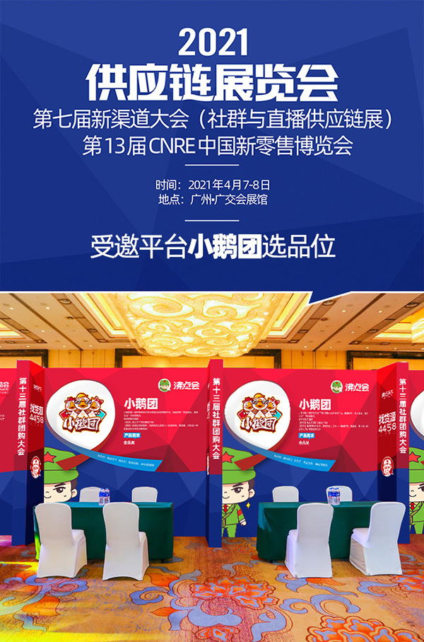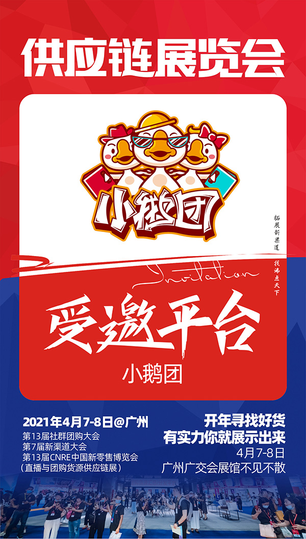 分享型社交新零售平臺小鵝團受邀參加的2021供應鏈展覽會于4月7-8日,在廣州廣交會館B區舉辦,本次展會以【新渠道,新機遇,新增長】為主題,旨在讓更供貨商快速對接新渠道,獲得更增長。