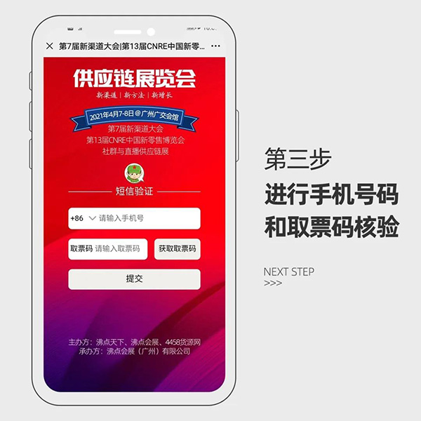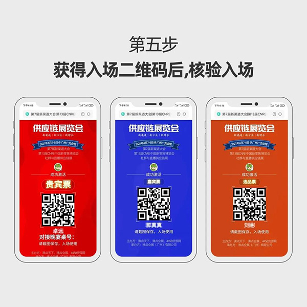 4月7-8日,廣州供應鏈展覽會暨社群團購選品會,入場二維碼生成步驟(針對已購票的嘉賓、貴賓、參展商、資源對接的社群與直播頭部平臺)。