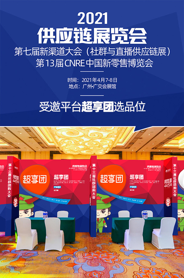 2021供應鏈展覽會,現場采購選品,嘉賓分享干貨,現場對接,學習交流,都能滿足您的需求,超享團誠邀供貨商朋友帶著產品來展位洽談合作。