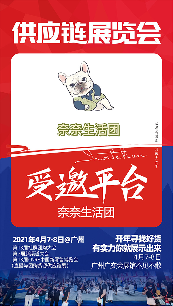2021供應鏈展覽會暨平臺選品對接會,于4月7-8日,在廣州廣交會館B區舉辦,奈奈生活團受邀入駐平臺選品對接會,誠邀供貨商朋友洽談合作。