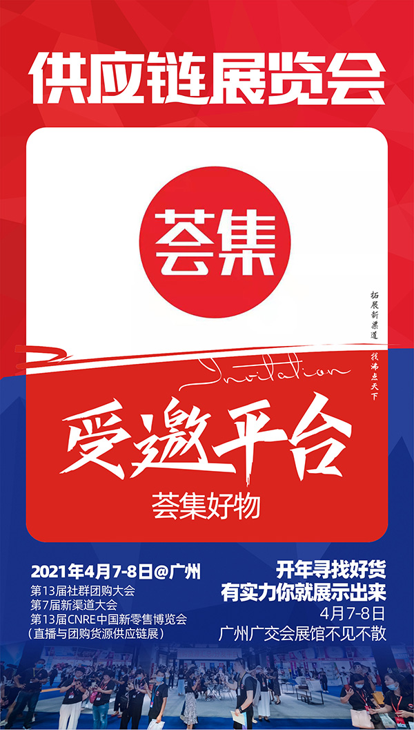 薈集團購入駐平臺展位,2021供應鏈展覽會暨平臺選品對接會,于4月7-8日,在廣州廣交會館B區舉辦,本次展會主要分為春季爆品展區、零食食品區、服裝鞋包區、家居百貨區、孕嬰童產品區、小家電展區、跨境商品展區六大展區,設置1000個展位,預計有5000款產品現場展示對接。