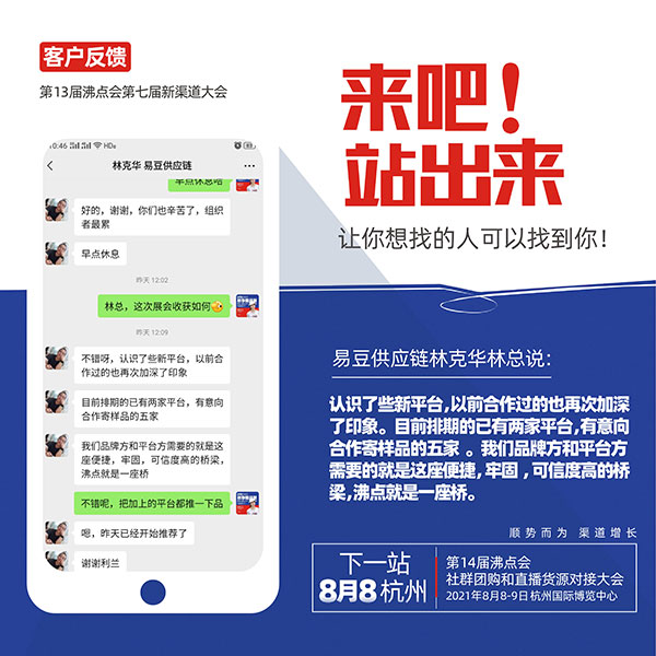 不錯呀,認識了些新平臺,以前合作過的也再次加深了印象。目前排期的已有兩家平臺,有意向合作寄樣品的五家。我們品牌方和平臺方需要的就是這座便捷,牢固,可信度高的橋梁,沸點就是一座橋。