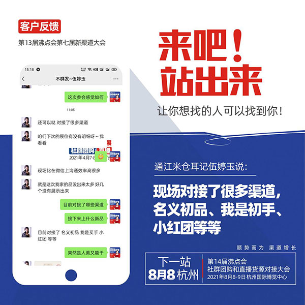 剛剛結束的第13屆沸點會暨平臺選品對接會,好評如潮,本次大會由沸點天下舉辦,吸引了來自全國的600多家供應鏈,和來自社群團購,社區團購,直播個人,直播機構,微信群,自媒體,平臺等多個渠道的眾多采購方前來找品合作,會后獲得參會者一致好評,通江米倉耳記食品有限公司受邀參加活動。