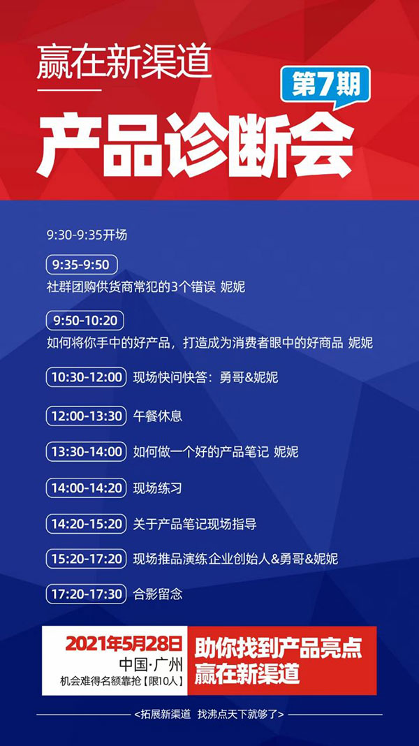 如何才能更快速的了解渠道,來參加沸點天下的贏在新渠道產(chǎn)品診斷會就好了,沸點天下執(zhí)行總裁妮妮,不僅給大家行業(yè)趨勢分析,還會拆解與平臺對接合作的節(jié)點,以及平臺的關(guān)注點,了解這些,你再回去用客戶思維改進你的推進節(jié)奏以及整理資料就可以了。