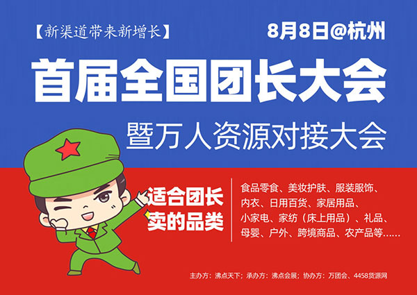 作為新零售創(chuàng)新者、以及新零售風(fēng)向標(biāo)的沸點(diǎn)天下,每推出一個(gè)新項(xiàng)目、新活動(dòng)就被人追著抄襲、模仿!今天(2021年6月9日),沸點(diǎn)天下將助力團(tuán)長(zhǎng)增長(zhǎng),幫助貨源方拓展更多渠道,發(fā)起首屆全國(guó)團(tuán)長(zhǎng)大會(huì)!立貼或截圖,“全國(guó)團(tuán)長(zhǎng)大會(huì)”是沸點(diǎn)天下創(chuàng)立的!2021年8月8日在杭州新渠道展期間舉辦!