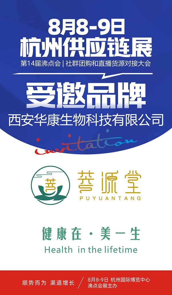 以“新渠道帶來新增長”為主題的,2021第14屆沸點會(杭州供應鏈展暨社群團購與直播帶貨貨源選品對接會)將在杭州國際博覽中心舉辦,西安華康生物科技有限公司受邀參展本次展會。