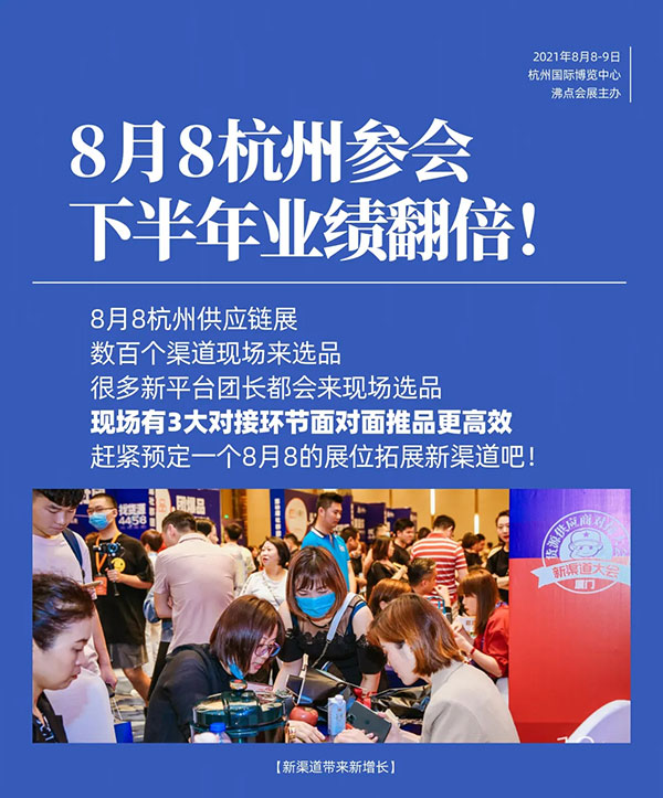 8月8杭州供應鏈展,數(shù)百家平臺現(xiàn)場選品,歡迎你帶著你的產(chǎn)品站出來,讓更多未來的合作伙伴看到你,并跟你產(chǎn)生合作,新渠道帶來新增長。