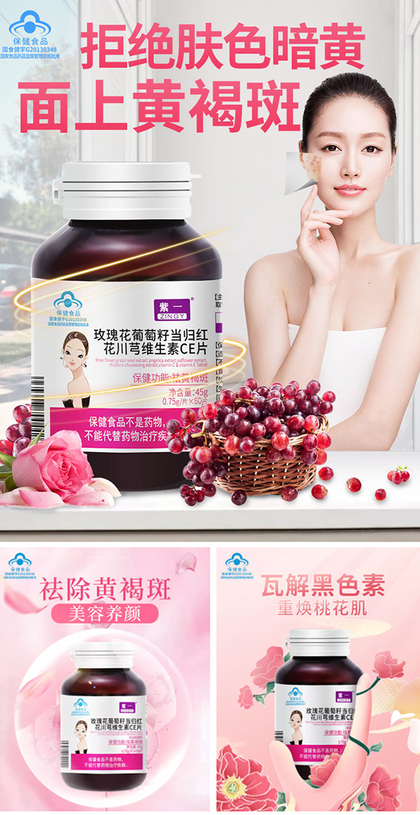 2.紫一玫瑰花葡萄籽當歸紅花川芎維生素CE片