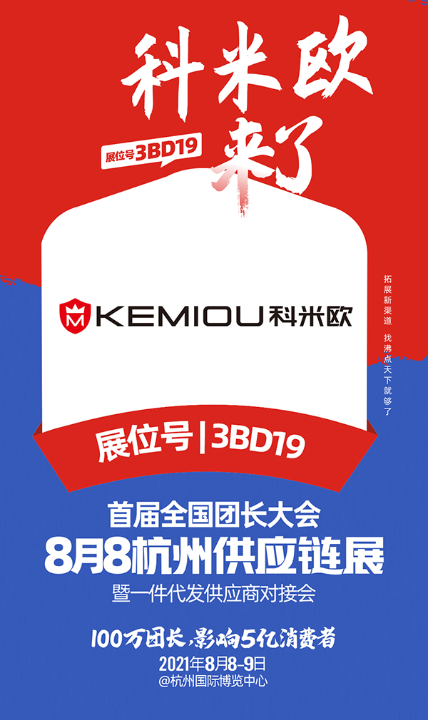 2021年8月8-9號,8月8杭州一件代發貨源展,科米歐與你相約3BD19展位,不見不散。
