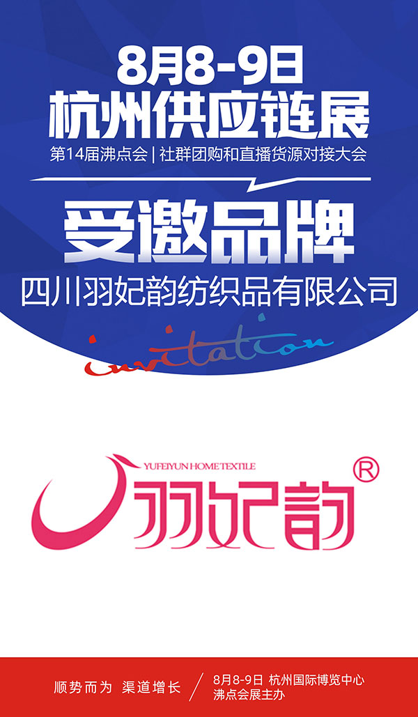 2021年8月8日在杭州,首屆杭州一件代發(fā)貨源展將在杭州國際博覽中心3樓舉辦。將匯集全國優(yōu)秀的具備一件代發(fā)貨源的供應(yīng)商集中展示,供各大平臺(tái)和團(tuán)長選品對(duì)接。優(yōu)質(zhì)家紡類品牌——羽妃韻受邀參加8月8杭州一件代發(fā)貨源展!
