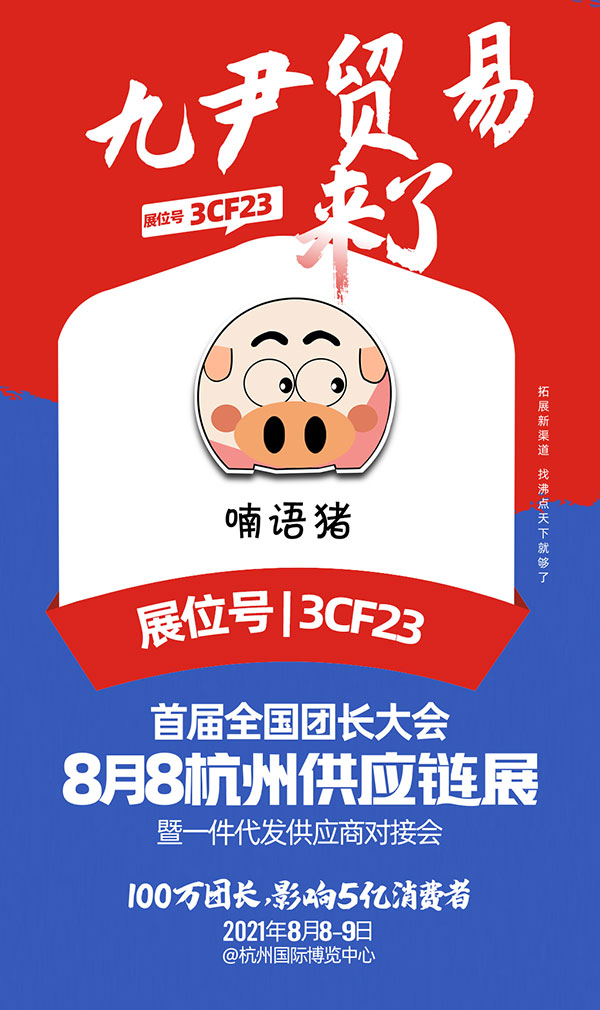 2021年8月8-9號,8月8杭州一件代發貨源展,溫州九尹貿易有限公司與你相約杭州國際博覽中心,展位號:3CF23,我們不見不散。