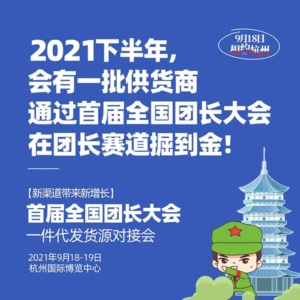 最近跟身邊的很多朋友聊天,大家都有同樣的感覺:當下的團長賽道,就象是3年前的社群團購賽道一樣,關注度有了,勢能也有,就差方法和一件代發好貨源。而9月18杭州一件代發貨源對接會暨全國首屆團長大會,帶來了1萬多個好貨源,以及1天的行業方法討論,所以,大家一致的結論是:2021下半年,會有很多供貨商通過首屆全國團長大會在團長賽道掘到金。