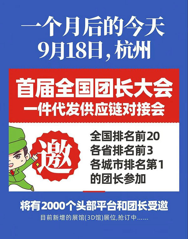 2021年9月18日,行業第一場團長大會,誰一起去?舉手!首屆全國團長大會一件代發貨源對接會。