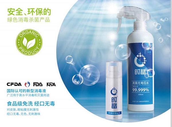 時備高氧化電位水是純電解生成,無化學品添加合成,無污染,無殘留。入眼無刺激、經口無毒、對皮膚無刺激、作用后還原成為水、不燃不爆、無刺激性,無腐蝕性,是新一代綠色環保高水平消毒液。