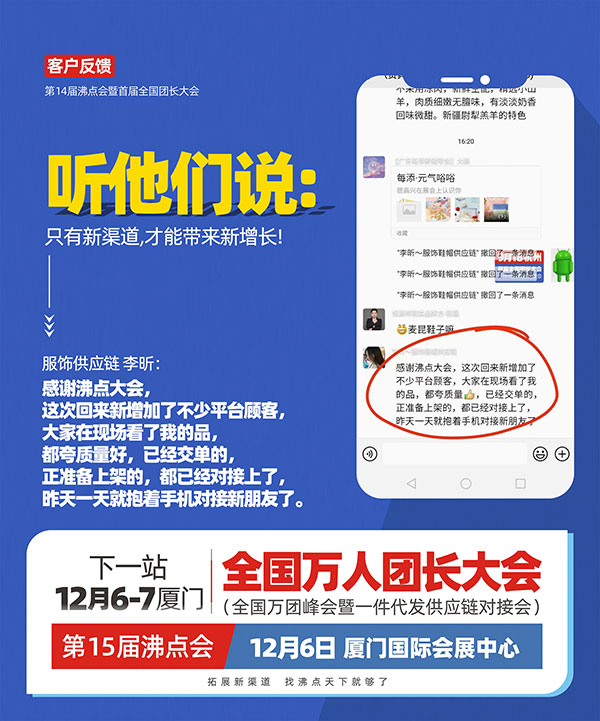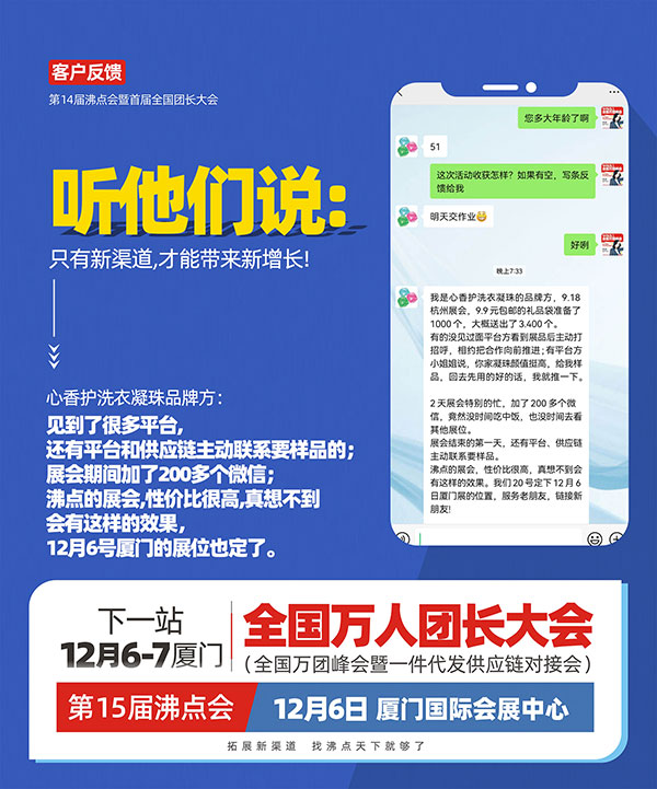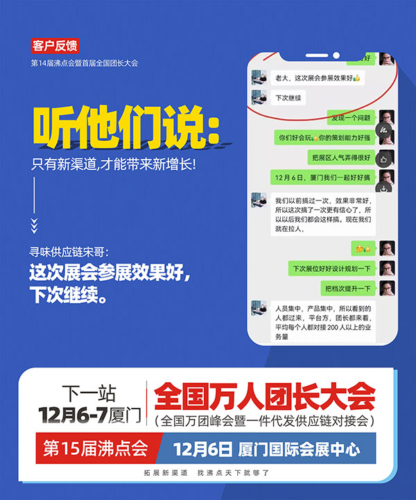 見到了很多平臺,還有平臺和供應鏈主動聯系要樣品的;展會期間加了200多個微信;沸點的展會,性價比很高,真想不到會有這樣的效果,12月6號廈門的展位也定了。