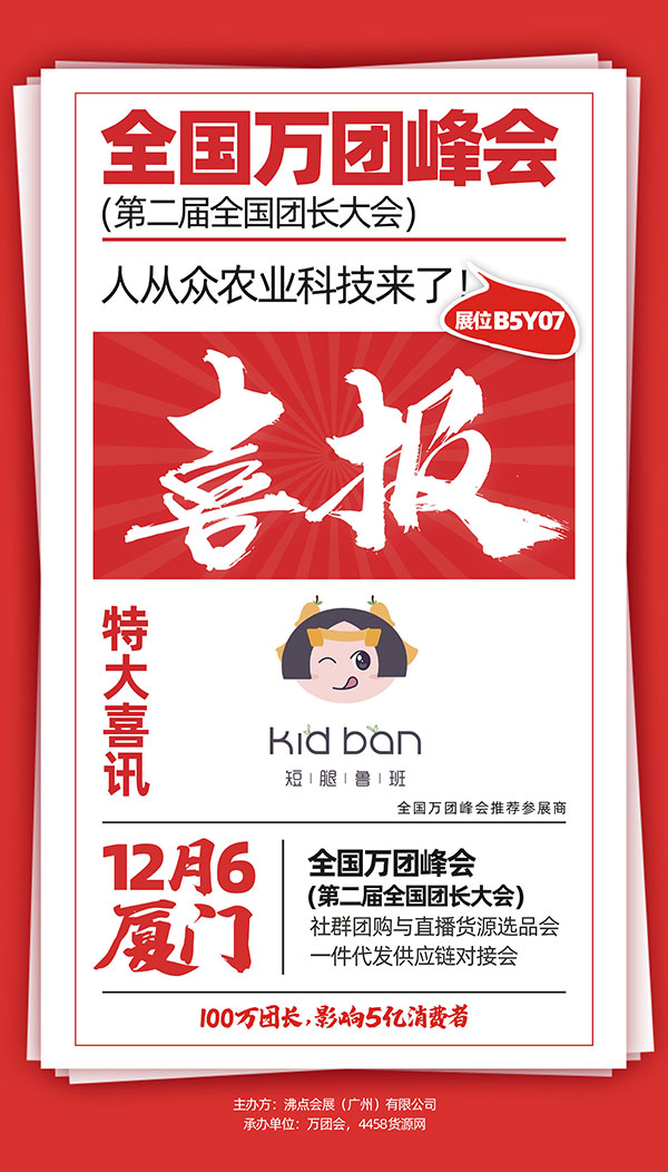 漳州市人從眾農業(yè)科技有限公司是一家互聯(lián)網生鮮服務提供商,主營生鮮果蔬一件代發(fā)及落地配供應。2017年底正式拓展線上業(yè)務,2018年,正式成立漳州人從眾貿易有限公司,同時創(chuàng)立品牌KIDBAN短腿魯班。