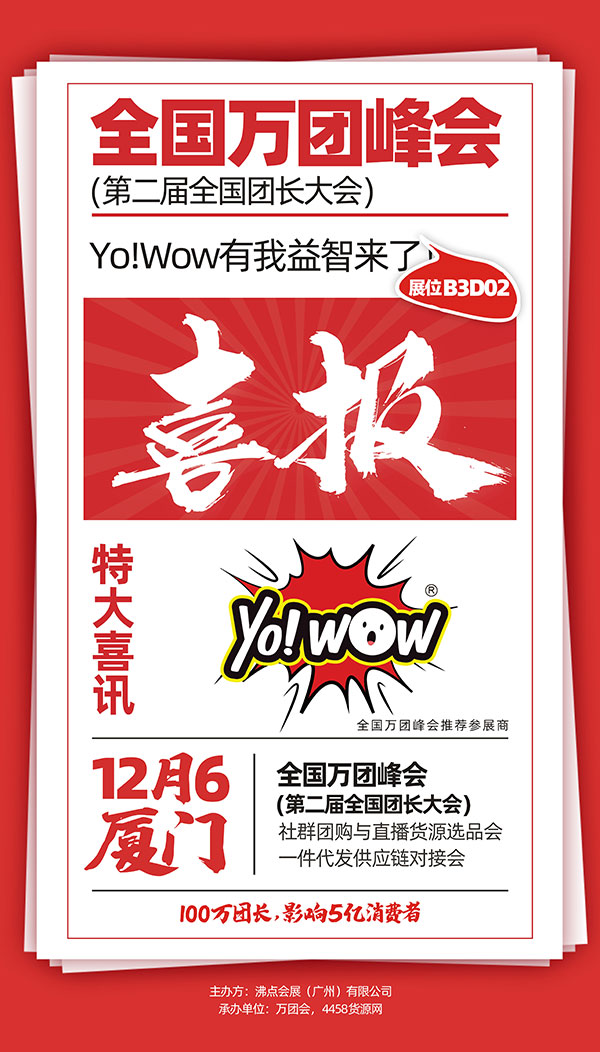 這是Yo!Wow有我益智第一次參加沸點會,期待與各平臺進行高效鏈接合作,拓展社群新渠道。2021年12月6-7日,廈門全國萬人團長大會,Yo!Wow有我益智與你相約廈門國際會展中心B3D02展位,歡迎各大平臺觀臨指導,不見不散!