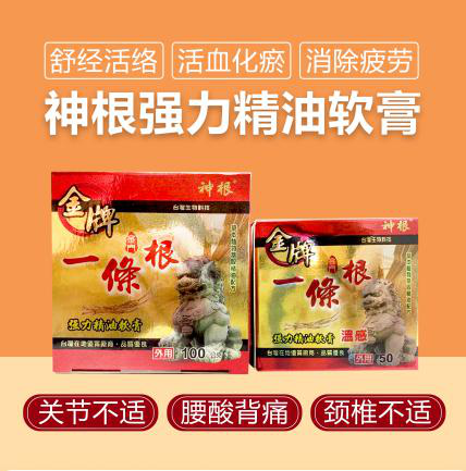 金牌一條根位于臺灣屏東,由一群有著制造、研發酸痛貼布,30年經驗的團隊所創立,致力于中藥制造、研發、針對市場需求,專業研究開發草本萃取精油以溫和不刺激,不傷皮膚效果加倍為訴求,生產出一條根系列產品,酸痛貼,按摩霜,按摩油等系列產品。主要作用于:緩解風濕,腰腿疼痛、跌打損傷、腰肌勞損、頸椎病、肩周炎、產后腰疼...家中常備,有備無患。