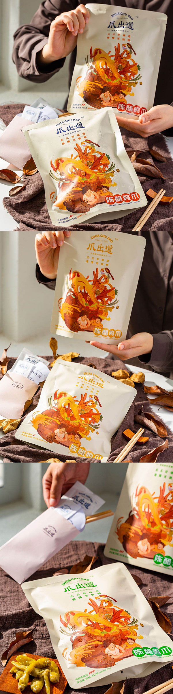 廣東大舊食品科技有限公司主打品牌——爪出道陳醋雞爪,目前有經典陳醋、陳皮檸檬、泡椒陳醋三種口味,作為雞爪賽道的垂直細分品類,優勢有: