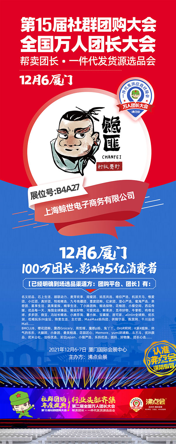 廈門全國萬人團長大會定于12月6-7日在廈門舉辦,活動規模將達到萬人,在招展開啟后,已有數百家品牌和團隊與沸點天下達成合作,參展廈門全國萬人團長!屆時,上海鯨世電子商務有限公司旗下中華特色即食小吃領導品牌——饞匪受邀參展廈門全國萬人團長大會將受邀參展本次活動。